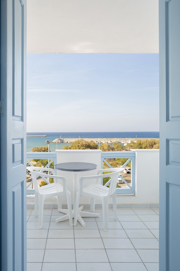 Enjoy comfortable and elegant luxury accommodation in a spacious interior of 20 square meters. The rooms feature private terrace or balcony, twin beds, bathroom with shower and toiletries, as well as magnificent view of the Aegean Sea.
